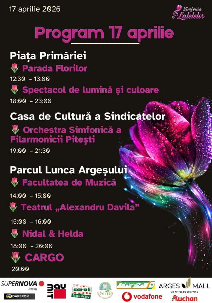 Pitești, 16 aprilie 2026 – Orașul lalelelor se pregătește să îmbrace haine de sărbătoare. Mâine, vineri, 17 aprilie, debutează cea de-a 49-a ediție a Simfoniei Lalelelor, un eveniment care a devenit, de aproape jumătate de secol, simbolul identitar al comunității argeșene. Anul acesta, festivalul vine cu o premieră: durata manifestării a fost extinsă de la tradiționalele trei zile la un „maraton” de zece zile, oferind vizitatorilor ocazia de a se bucura de spectacole și expoziții până pe 26 aprilie.